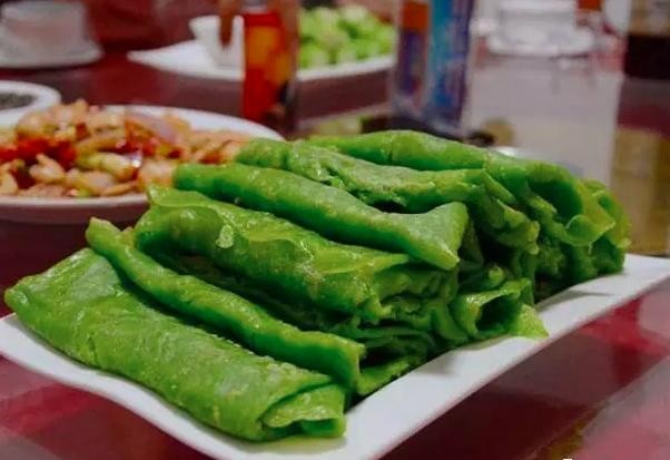 碧玉卷又叫做“韭菜糍”,是将大米和韭菜混合磨浆,用油烙成薄饼,再卷入香菇、笋丝、熏肉、豆腐干等馅料,煎成筒状。口感油软润滑,色香味俱佳。