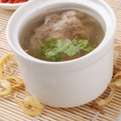 十几个炖罐一起做,再将这些小罐放到蒸笼里,蒸6 个小时左右就可以吃了。炖罐小小的一个,宽口深碗,汤色清亮,口味最开始觉得淡淡的,但你要像喝茶一样细细品味,便能品出味道来了。入口即化的肉,配着清汤,味道清纯鲜美。