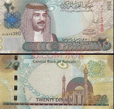 巴林第纳尔是世界上第二高的货币,货币代码 BHD,与美元汇率挂钩。在2021年 1 巴林第纳尔币可换算 2.66 美元或 2.20 欧元。
