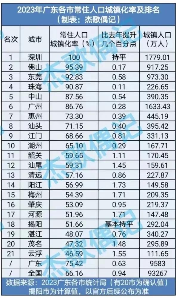 同期潮州市的常住人口城镇化率为6成多,低于汕头;而揭阳市只有5成多点,并在全省各市排名较靠后。