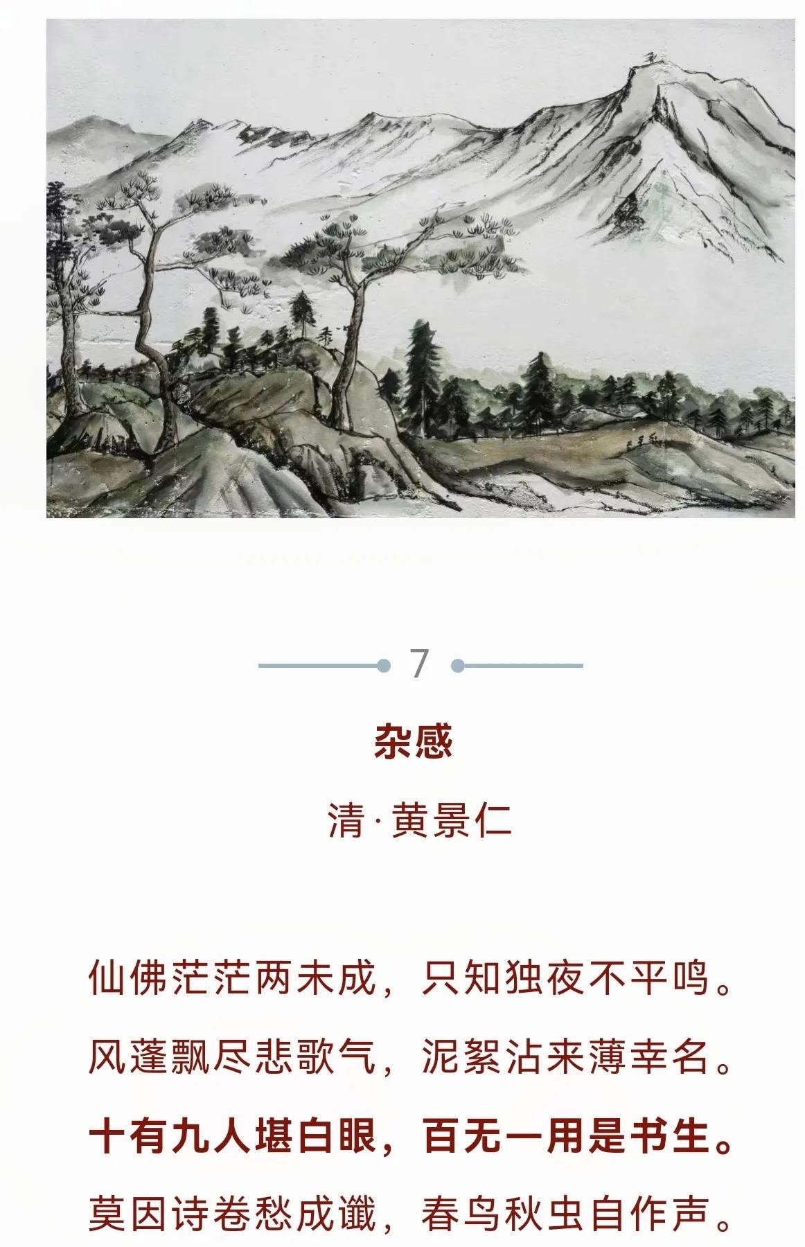 黄景仁的《杂感》则充满了怀才不遇的悲愤与对世间不公的控诉。“十有九人堪白眼,百无—用是书生”,一句道尽了书生的无奈与社会的偏见。那些被人轻视的目光,仿佛能穿透纸面,让人感受到诗人心中的愤懑与不平。
