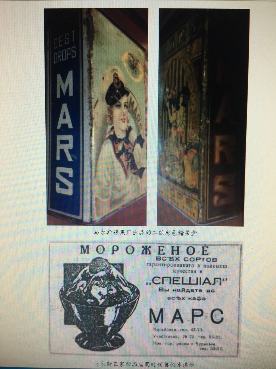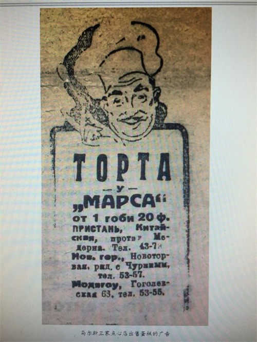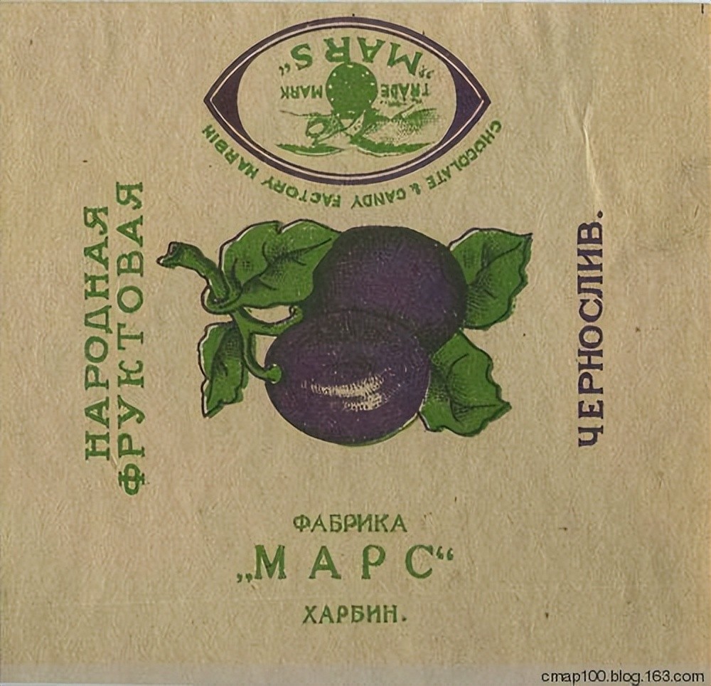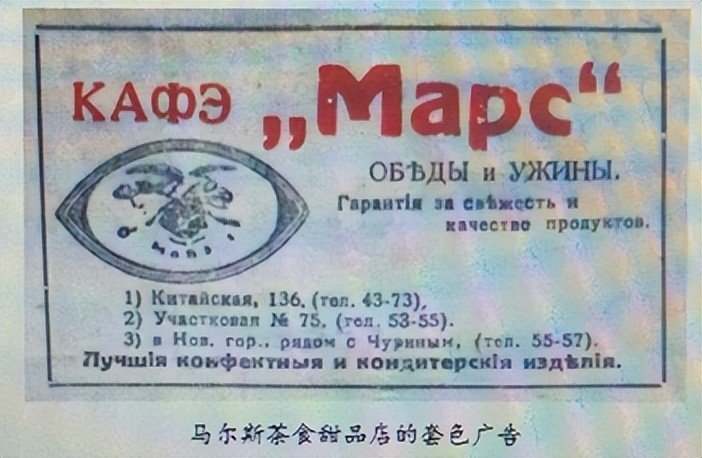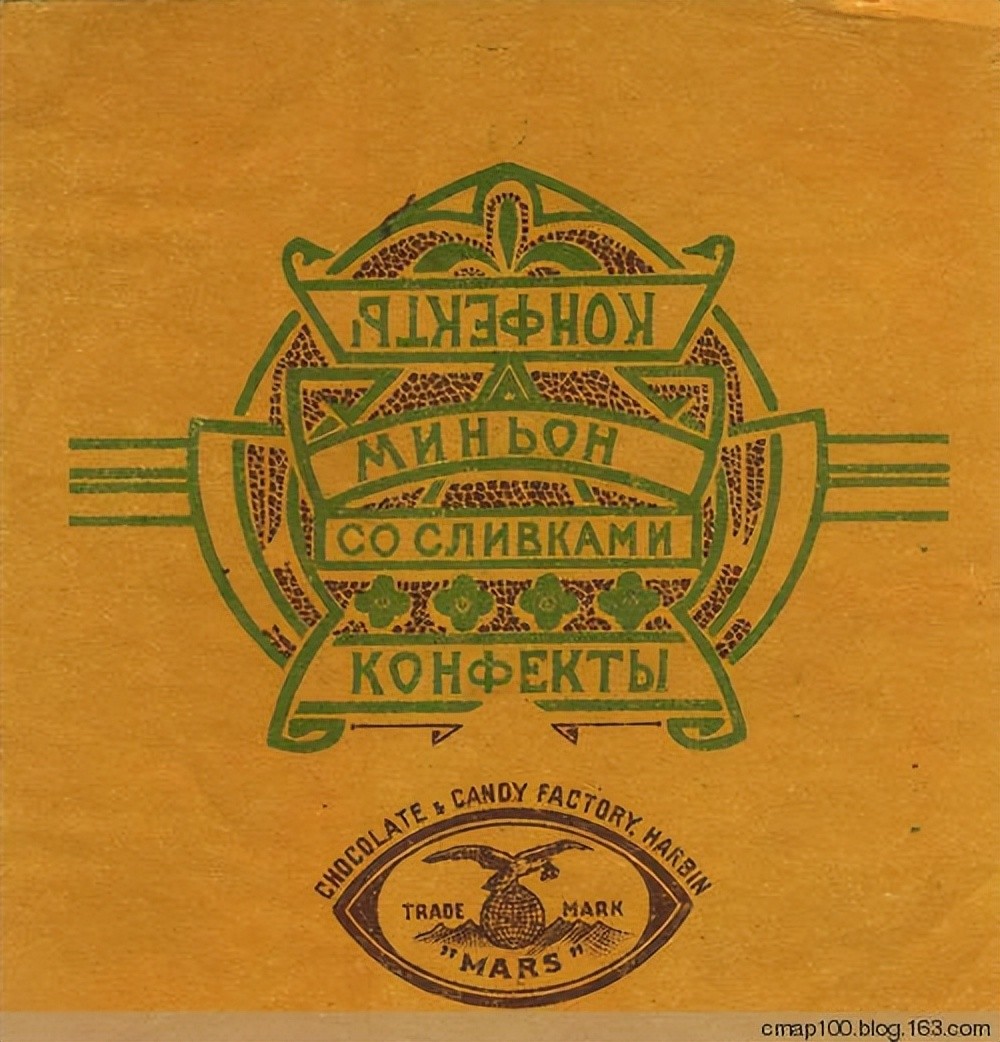 这里也曾汇集着一些生产食品糖果手工作坊和烟酒的小工厂,例如在比利时街上的糖果巧克力蛋饼厂,当时还是小有名气的糖果作坊,后来就成了著名的马尔斯糖果厂。1925年的时候,一个犹太人,名字叫Б.Л.楚基尔曼【Цукерман】的家伙,购买了这家特卡琴科的“糖果巧克力和蛋奶饼”工厂,将其更名为“马尔斯”,并注册了商标。厂址在比利时街(今比乐街)。在哈尔滨开设有四家茶食店,主要生产销售糖果、点心、冷饮等。商标为英文“MACS”和俄文“MAPC”。在此基础上,经过几年的发展,声势渐渐壮大起来,食品销售覆盖满洲,远处可以辐射到上海。1931年以前,马尔斯主要经营茶食糕点冷饮,生产和销售糖果、点心、高档冷饮等产品;1931年之后,马尔斯饭店又增加了营业项目,扩大俄式菜品,是那个年代最让中国人喜欢的俄式西餐。