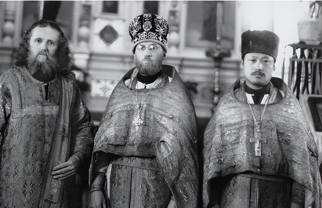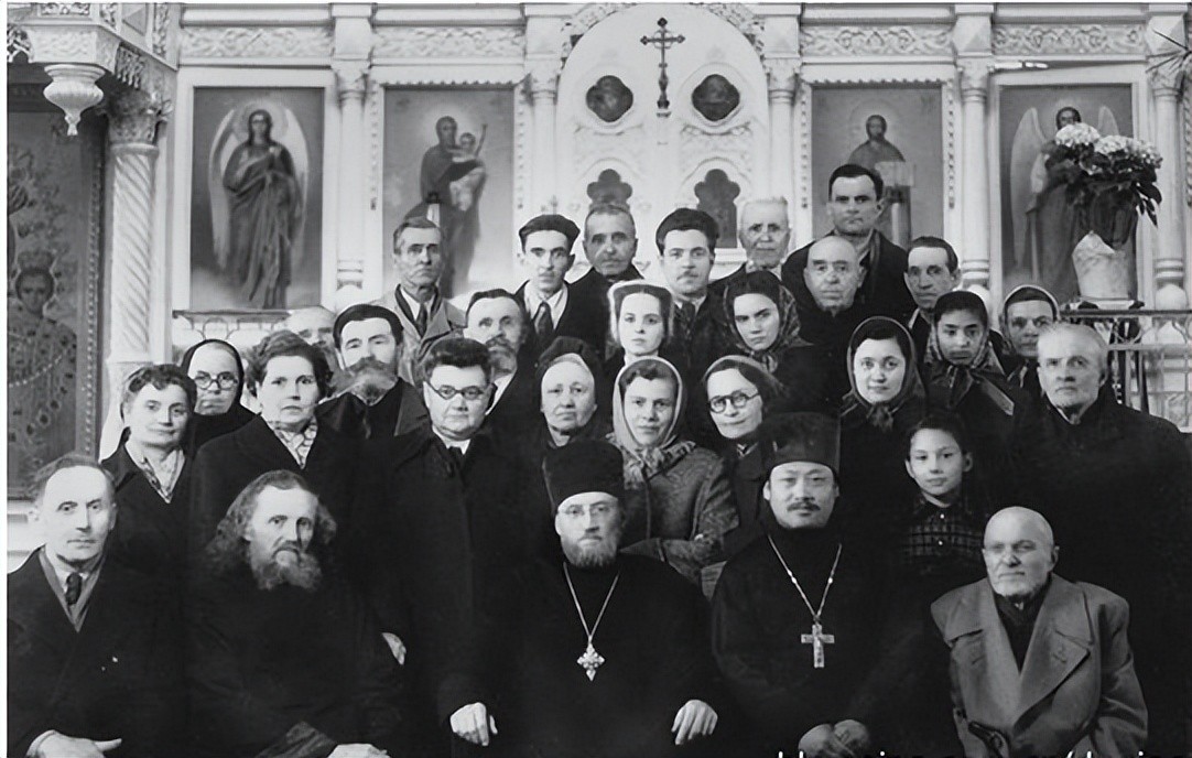 1958年,中立者为哈尔滨圣·阿列克谢耶夫教堂掌院祭祀尼古拉·斯塔尔各阔夫神父,其右为最后一任掌院祭祀吴志全神父。