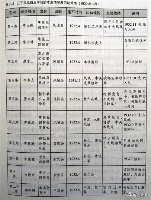 攻打本溪湖之战本溪湖为安奉铁路要冲和本溪县城所在地,驻扎有日本守备队、宪兵队和伪公安队。1932年8月中下旬,李春润奉辽宁民众自卫军总司令唐聚五之命,指挥第一方面军各部向沈海、安奉铁路沿线运动,相机收复抚顺、本溪。8月20日,自卫军第六路军旅长刘克俭等率2000余人,由新宾进入本溪县望城岗子,并做好进攻本溪县城的准备,各部义勇军亦闻风而动。8月31日,义勇军第六路军刘克俭、钟子臣进至偏岭指挥,义勇军张永才、黄锡山等率领500余人兵分3路,从明山岭、骆驼岭联合进攻本溪湖,于凌晨4时突入本溪湖街,攻破伪公安队200余人防线,并对伪公安队和商家炮楼高喊:“中国人不打中国人,我们借路攻打洋街!”当时中国商家炮手也只对空放枪。6时30分,义勇军在日本街口遭到日本守备队的密集火力阻击,在巷战中,双方互有伤亡。由于义勇军武器简陋,缺乏配合,加之日军出动飞机轰炸,义勇军进攻失利,主动撤出。据日伪资料记载:“午前4时,匪等约有500名一齐进攻,冲破200多名公安队之防线,闯入城内,大肆抢掠,放火焚烧,唯县公署幸免于难。”《盛京时报》载:“该地守备队即时出动,比及午前6时已将匪贼击退。是役也,日守备兵二人负伤,公安队员一人战死,宪兵队司机一人负伤,匪方在旧市街,遗弃尸体四具云。”