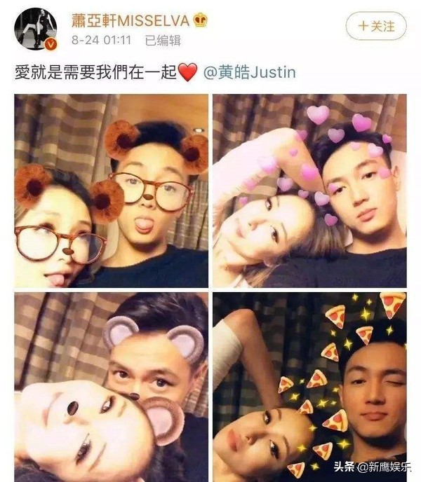 2019年8萧亚轩微博晒照公布比自己小16岁的男友黄皓,并配文“爱就是需要我们在一起”。如果不是《吐槽大会》,相信很多人不会注意到萧亚轩的这一任男友,毕竟萧亚轩的每一任男友颜值都很高,黄皓并不是唯一。