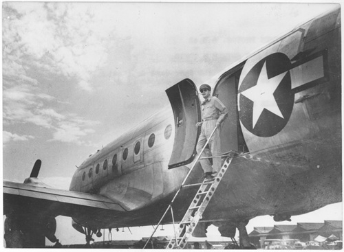 1945年,麦克阿瑟将军趾高气昂地走下专机踏上日本领土