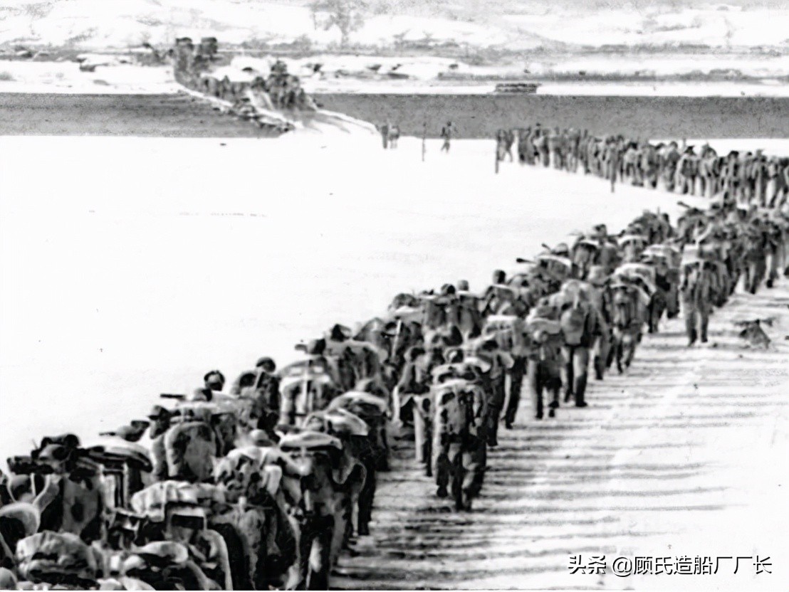 中国人民志愿军部队越过冰封的鸭绿江奔赴朝鲜前线