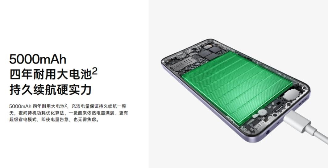 后置摄像头采用竖排双环设计,能够捕捉清晰、细腻的画面。电量方面,