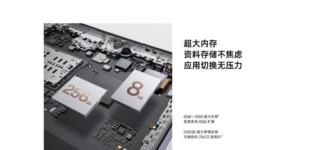 主打大内存和长续航。这款手机采用了水滴屏设计和全新雾面霜花工艺,外观时尚独特。