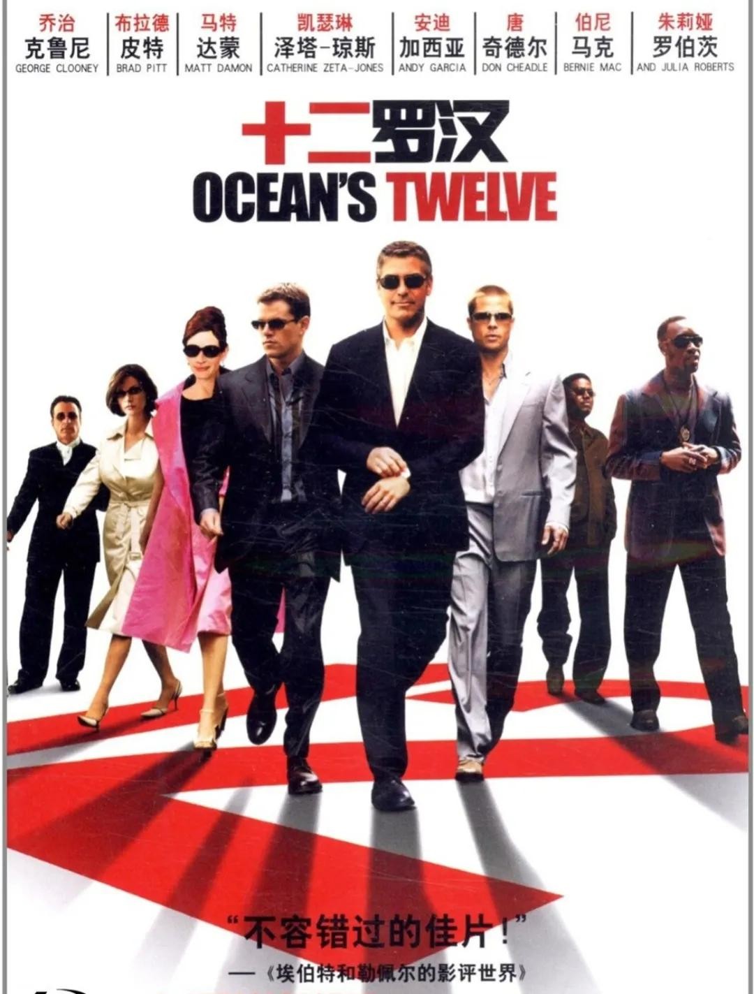 5《十二罗汉》史蒂文.索德伯格执导的犯罪片。乔治.克鲁尼与布拉德.皮特,马特.达蒙,凯瑟琳.泽塔-琼斯,朱莉娅.罗伯茨等联合主演。