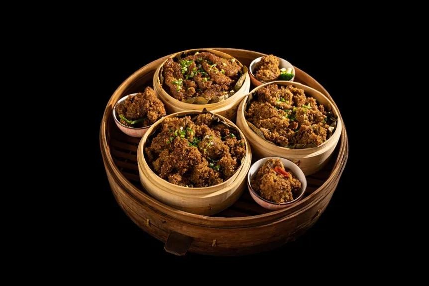 黄泥粉蒸肉,久负盛名,始自清朝咸丰年间,但凡老街大小酒肆、餐馆,逢席皆必有粉蒸肉,其因配料独特,制作独到,口味独家而世称“三独粉蒸肉”。