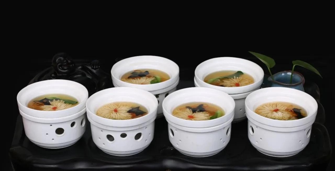 二乔养生盅,东风不与周郎便,铜雀春深锁二乔。二乔的娘家就在潜山,姐妹二人不但貌美如花还勤劳能干,常用本地的石耳、豆腐、菌类等食材,制作高汤,后得名二乔养生盅,具有养阴润肺、凉血止血的功效。