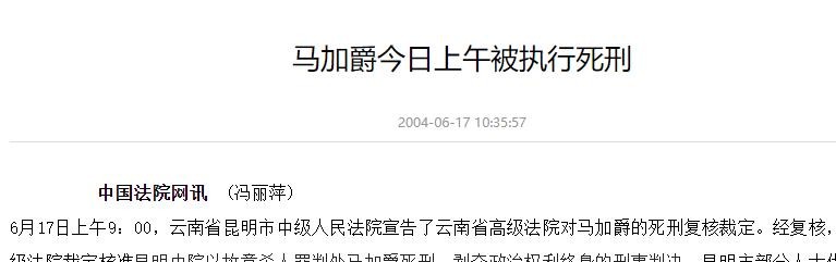 中国法院网——马加爵今日上午被执行死刑