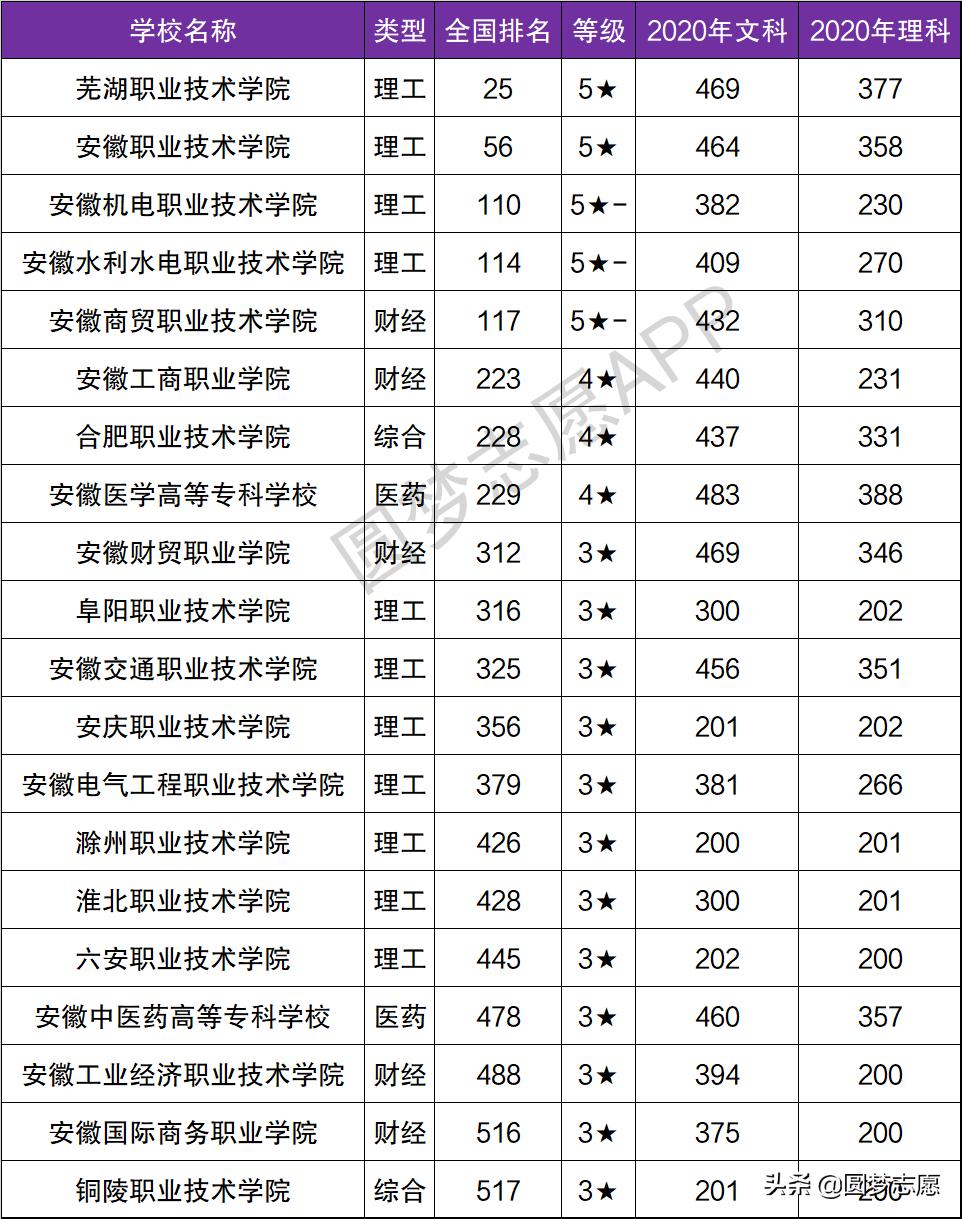 安徽好的专科学校排名及录取分数线(安徽最好的大专排名)