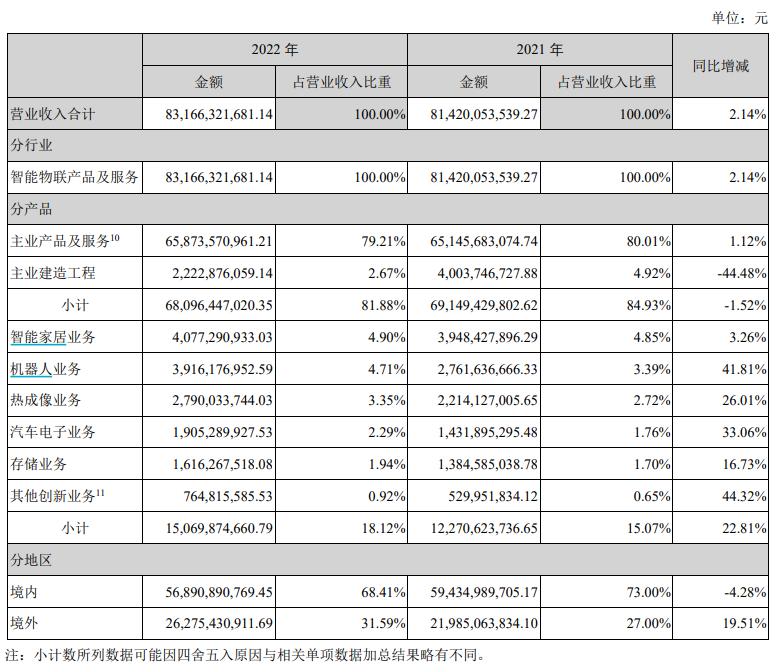 海康威视 2022 年营收同比增长 2.14% 净利润首现负增长