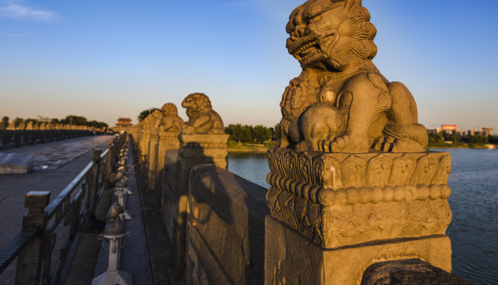 卢沟桥为十一孔联拱桥,拱洞由两岸向桥中心逐渐增大,拱券跨径从12.35米至13.42米不等,桥身中央微微突起93.5厘米,坡势平缓。