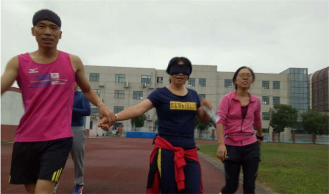 胡老师还说,学生们和盲人在跑步过程中,学生们会根据自己不同情况选择不同训练方式:遇到视力不好或身体素质较弱的情况可以选择慢跑;如果是视力好或者身体素质强的情况可以选择速度快一些;而遇到了年龄偏大、或者视力不好、或者身体素质较弱的情况,就需要增加力量训练和耐力训练。