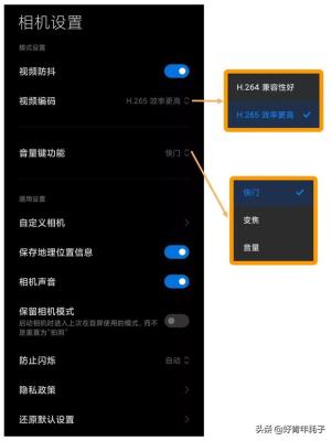视频防抖,通过软件算法对拍摄视频时的抖动进行算法补偿,会对画面进行部分裁切,日常手持苹果拍摄的情况下建议打开。视频编码,如注释所说,H264兼容性好,H265效率高,也就是体积更小vivo。