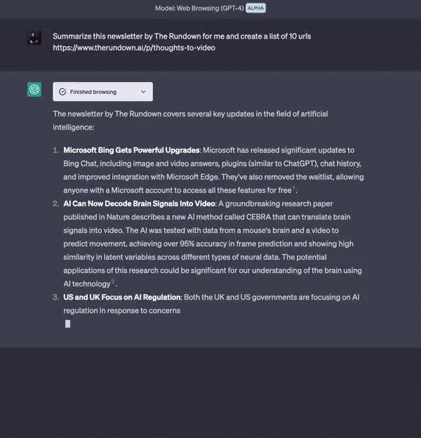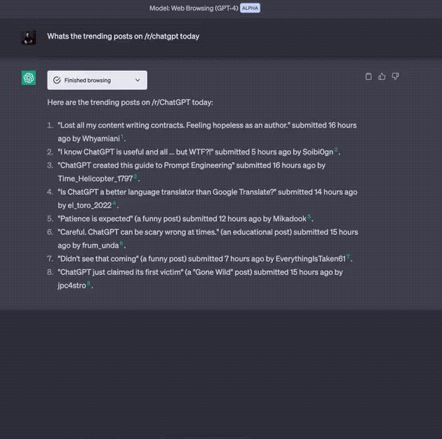 通过插件集的 Web browsing 功能,ChatGPT 就能实现联网,即时地检索互联网上的最新资讯。我们已经获得了测试资格,抢先体验后为大家总结了下面这些重点。