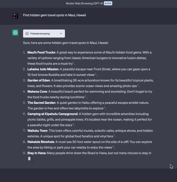 提示词:「找出毛伊岛,夏威夷的宝藏打卡点」。