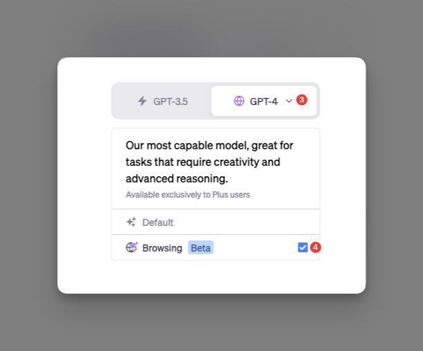 1. ChatGPT Browsing 必须调用 GPT-4 模式,这意味着你会受到相应的次数限制(3 小时 25 次),不能无限制地追问。