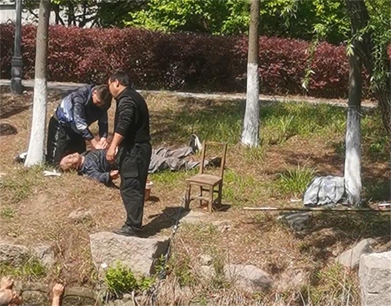 △ 给落水老人进行心肺复苏救援 视频截图