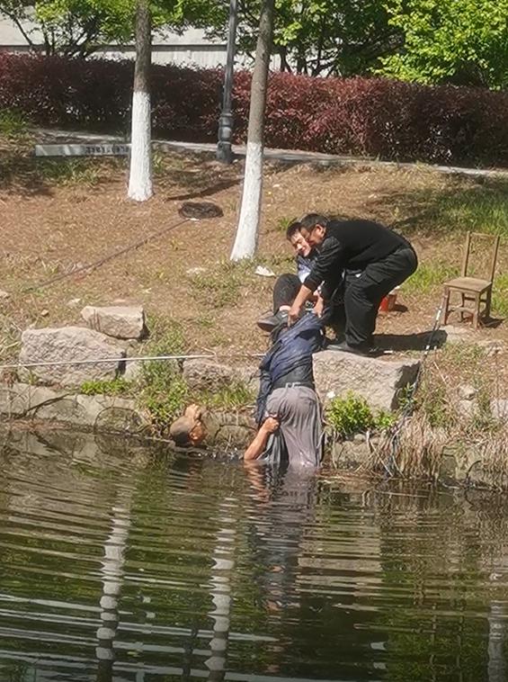 4 月 30 日上午 10 时许,70 岁的范学法正在小区附近的河边钓鱼,期间手机掉进了河里,他便弯腰去捡拾手机,不料失去平衡自己也坠入了河里,当即慌乱地在河中扑腾求救。在附近垂钓的陆和彬发现后,赶紧跑过去救援,在河边抓住老人试图将他拉上岸来,同时大声呼喊向周围的其他求助。