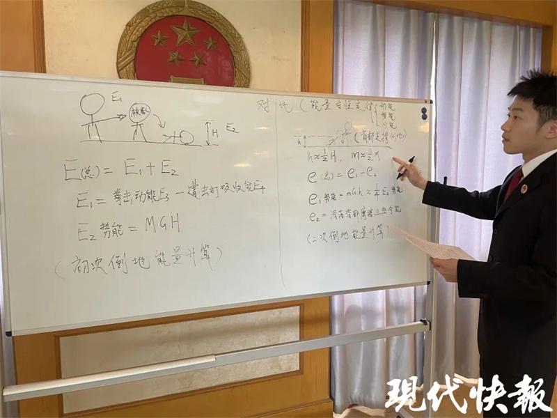 庭审中,检察官结合案发时的现场视频和证人证言,从物理力学、动能、势能及能量守恒定律的角度,对被害人是否受到二次伤害进行分析。
