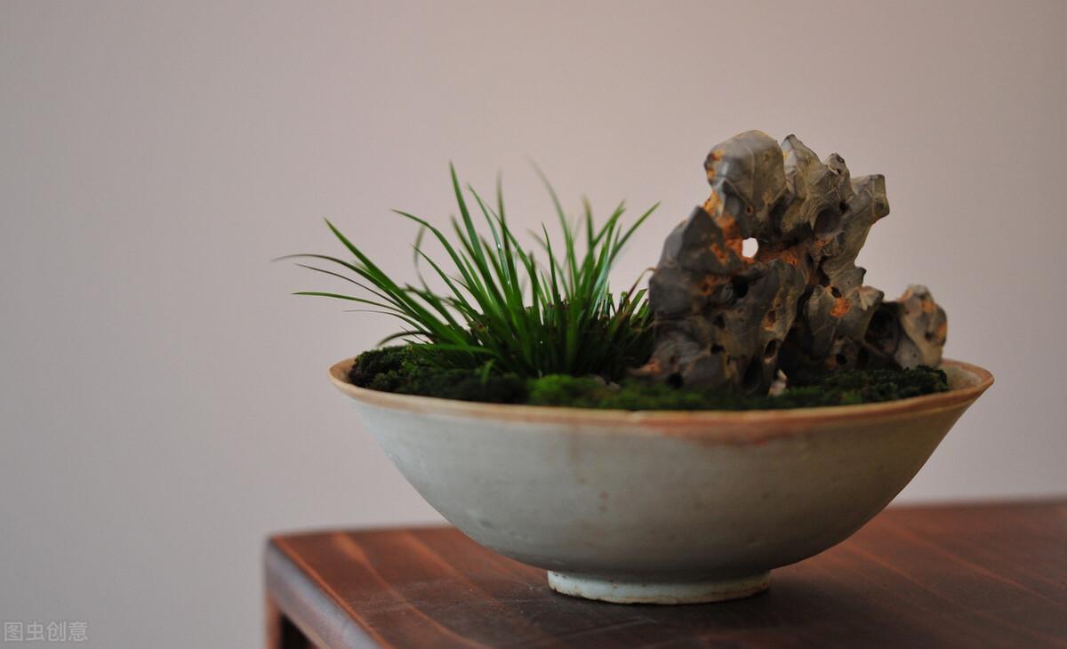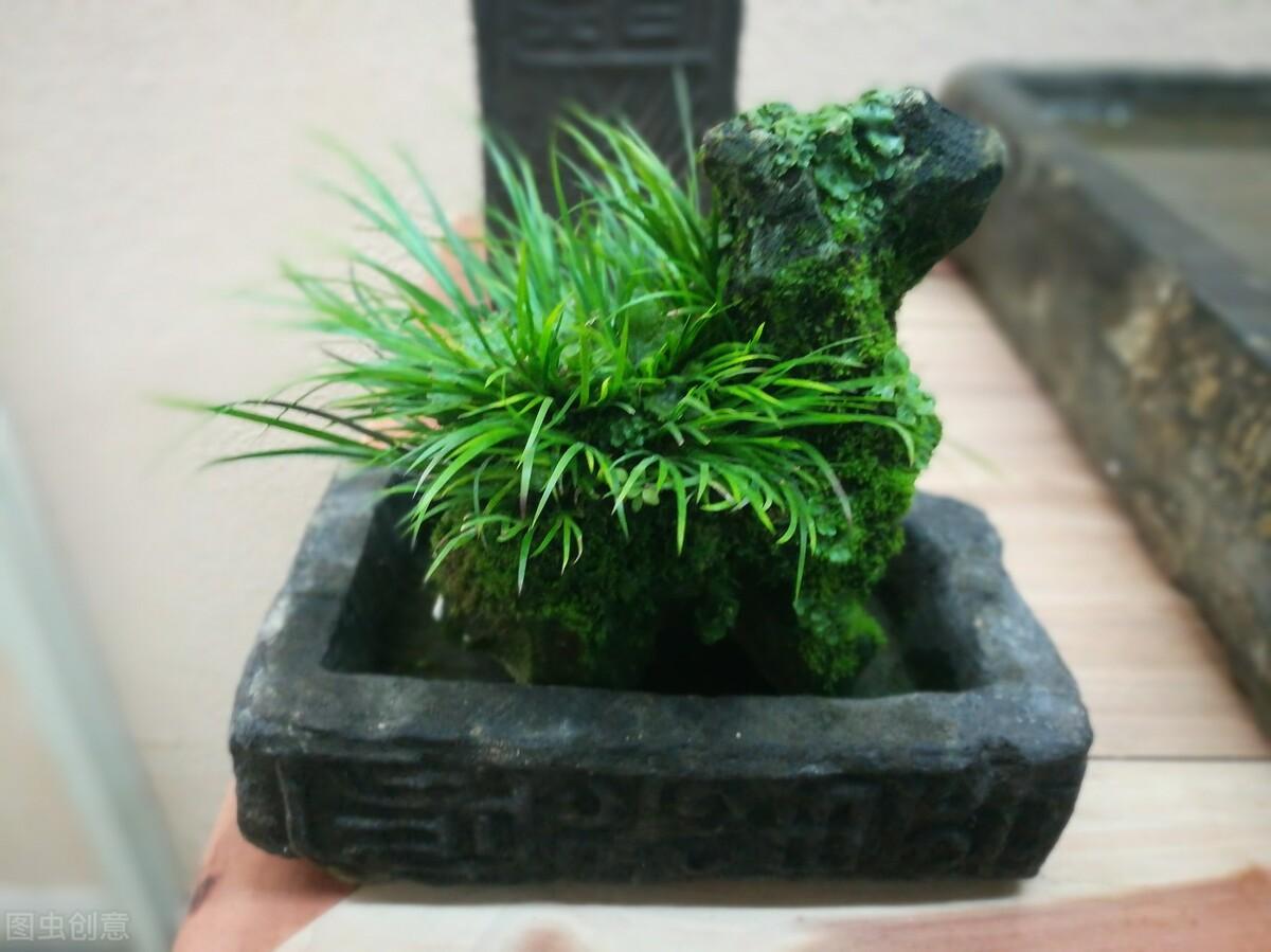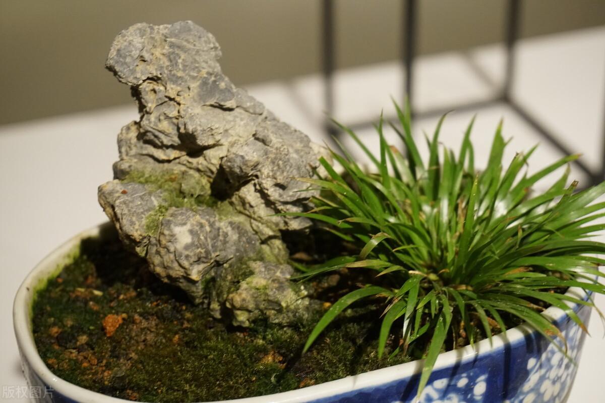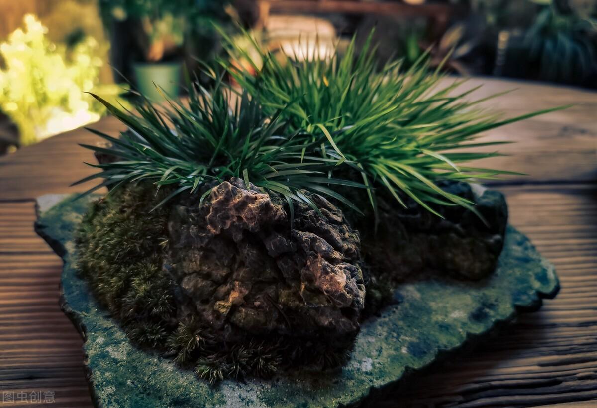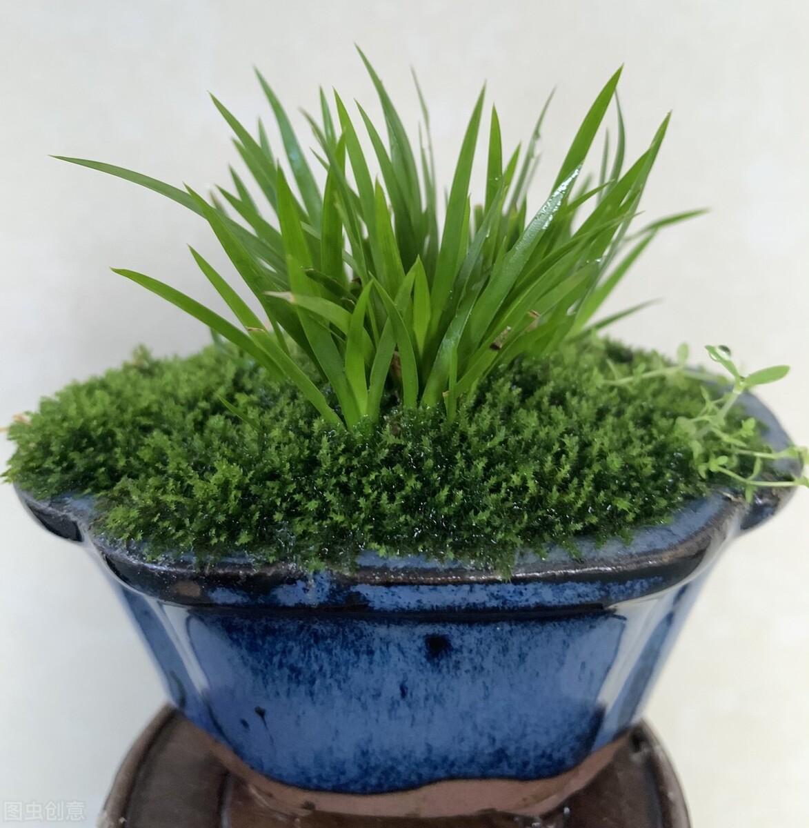 菖蒲的养护比较简单,无需直射光,基本无需施肥,将其栽种在净石或者盆钵中,浇灌清水,就能蓬勃生长。要是在菖蒲周围配制上苔藓,观赏价值更好,素雅青翠,野趣十足,清心净气,让人不喜欢都难。