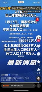- 为什么2023年中国人口减少208万人 # 为什么2023年中国人口减少208万人 近期数据显示,2023年中国的人口出现了明显的减少,总计减少208万人。这一人口变化引发了广泛关注和研究,究竟是...