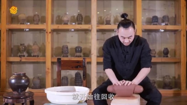 一种是景德镇比较传统的手法,叫羊角揉,用力往下压,揉成一个羊角的形状,揉泥最重要的是把气泡排出,需要不间断的去揉。另一种就是菊花揉,右手扶着泥,左手用力向前推,一个用力一个辅助。