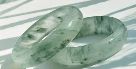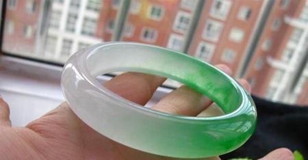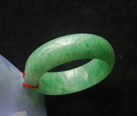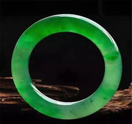 上图为天然的满绿翡翠手镯