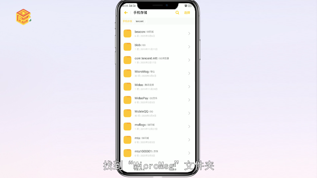 2、在“tencent”文件夹内找到“MicroMsg”文件夹,并点击。