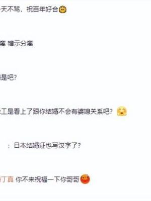 多数评论里夹杂着各种各样的人身攻击,像什么“冥婚”、“不用处理婆媳关系”、“暗示分离”、“日本结婚证”等话语,有多难听就多难听。