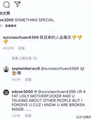 2019年2月,有网友顶着孙笑川的头像,打着“Sunxiaochuan4399”的ID名称,跑到冠希哥的一条INS账号动态里唱衰人家,他说“冠希的人品属实不行”,还用喝倒彩的手势来进行表示。