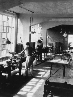 包豪斯承接的社会订单主要建筑在“作坊”中完成,包豪斯的“作坊”有点类似学院工作室,同时又是学生接受工艺训练的场所,作坊的分类不少,学生可以根据兴趣特长选择,也有点选择就业方向的意味,于是“作坊”有着三合一功能属性。