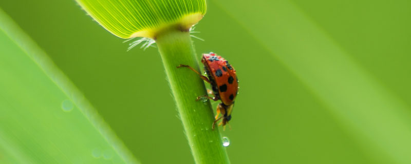 瓢虫,也叫金龟子、红娘等,它是一种小型昆虫,体积非常小,身体上具有红色、黑色或黄色的斑点,身体颜色非常鲜艳,有些种类会分泌带有臭味的分泌物,所以也叫臭龟子,瓢虫是完全变态的昆虫,幼期和成虫的形态完全不一样,一生会经过卵、幼虫、蛹和成虫四个阶段。