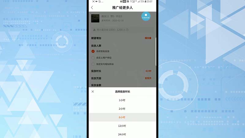 3、然后根据推广需求,设置投放人群、投放时长、投放页面等,最后完成支付后即可置顶。