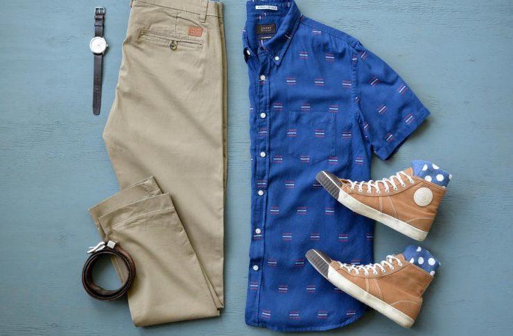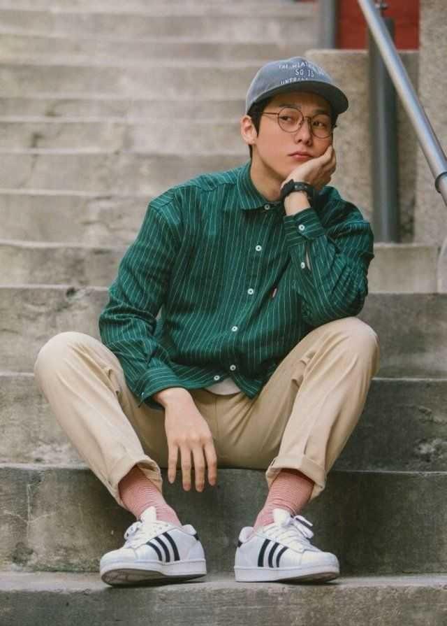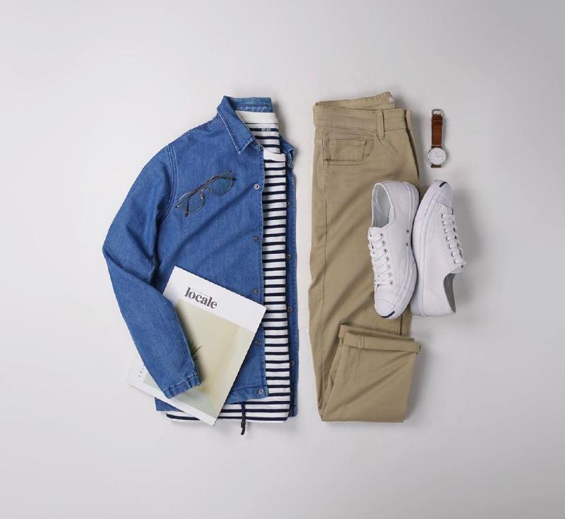 同样的商务休闲衬衣,把鞋子换成高帮帆布鞋,也瞬间变成潮男风。