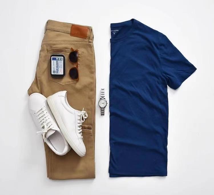 夏天真的十分推荐一件藏蓝色的T恤,可以说是成熟男士必备的单品了,没有黑色那么单调,但也是十分沉稳的。