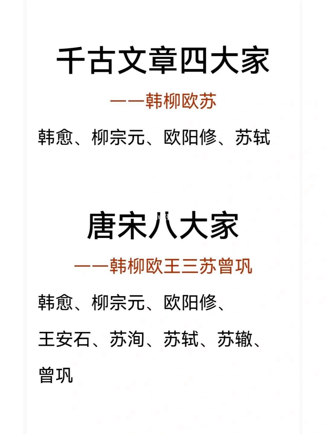 不过大家多数都认可的答案是韩愈、柳宗元和欧阳修、苏轼。