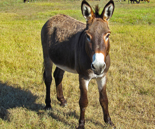 2、骡有着长长的耳朵和厚实的脑袋,外形看起来像马,但骡发出的叫声像驴或马,骡具有耐力强、力量大的特点。