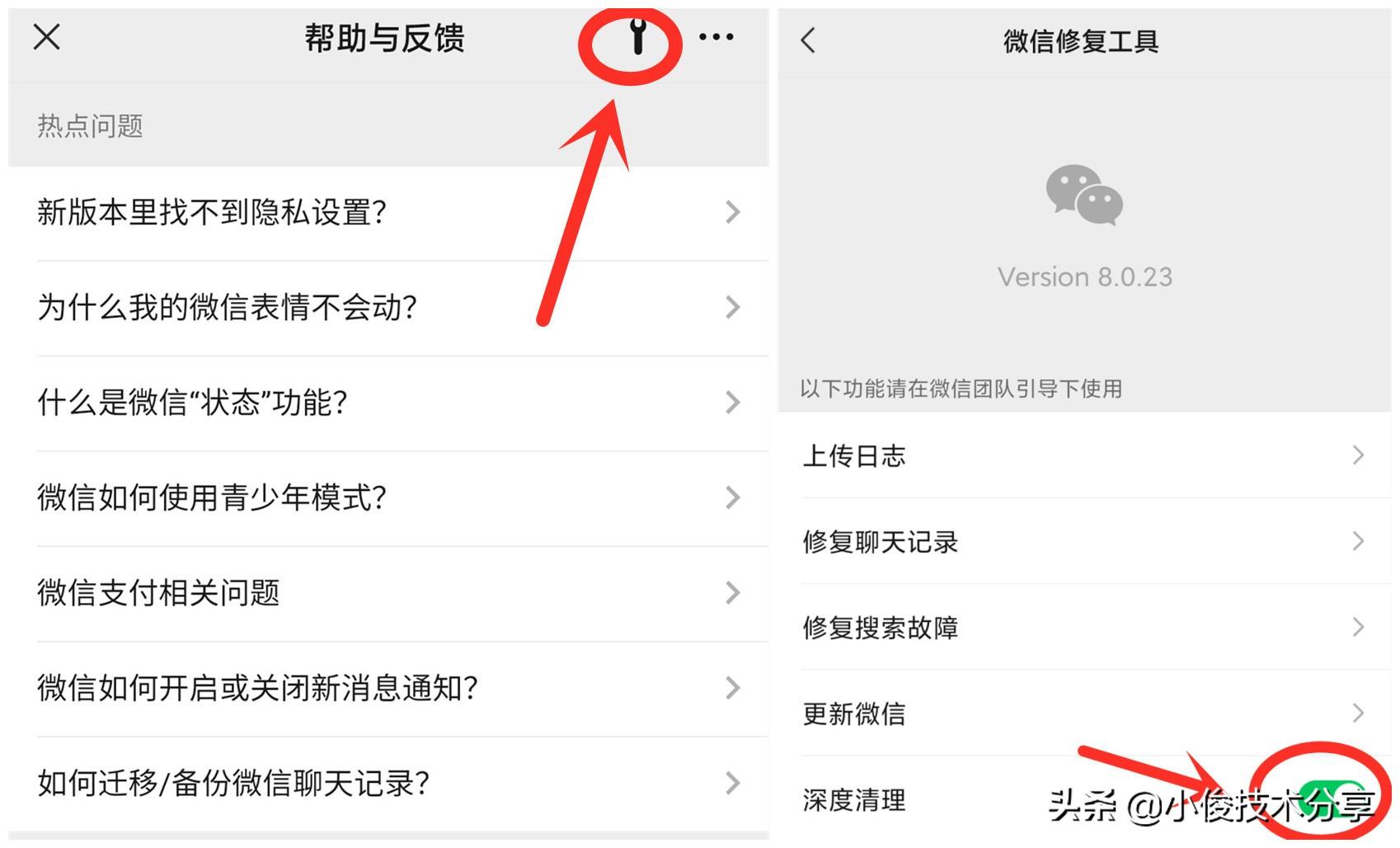 一、开启微信深度清理缓存开关,深度清理微信缓存