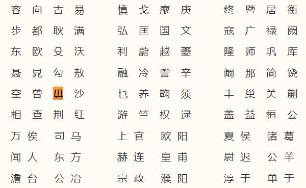 两、毋姓百家姓排名