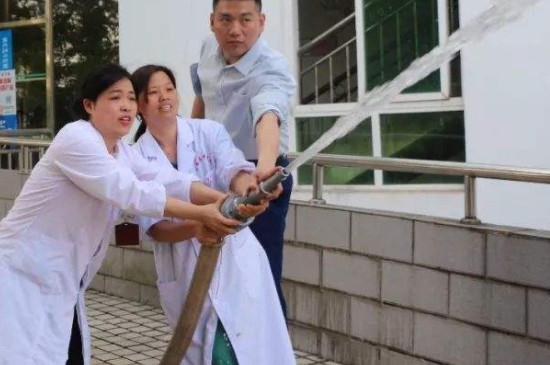 5、两人以上环抱水枪头对准火源喷洒水