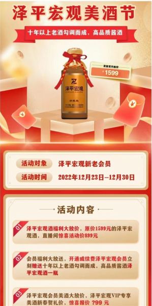 而任泽平授权的这款酱酒产品,实际上也并非近期才推出。在“泽平宏观”的微信公众号上,南都湾财社记者搜索发现,2022年12月26日,该公众号曾发布了一条直播预告,内文显示,“为回馈会员及粉丝朋友们,传播酒文化,助力白酒产业发展,共同迎接新春佳节,泽平宏观‘美酒节’正式启动!活动期间购买或续费会员赠送泽平宏观酒一瓶”。