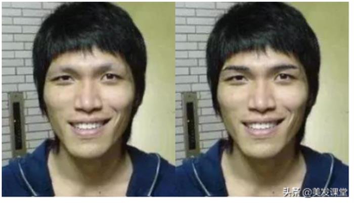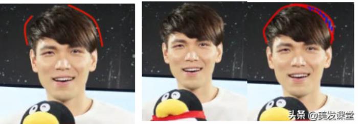 我们以上说的这两点,内轮廓和外轮廓都是缺一不可的,比如下面这张图,内轮廓其实还是可以的,外轮廓,左边还行,饱满,右边就塌下去了,显得头顶偏斜,尖了。如果我们把右边也打理的饱满,那整个脸就会柔和很多。