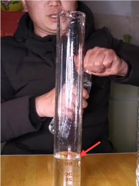 5、把蒸馏水倒入白酒中。