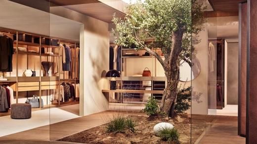 GIORGETTI大胆地将原木与设计创意相融合,通过放大原木材质本身的魅力,烘托衣帽间整体的亲和感,以实现惬意的空间氛围。