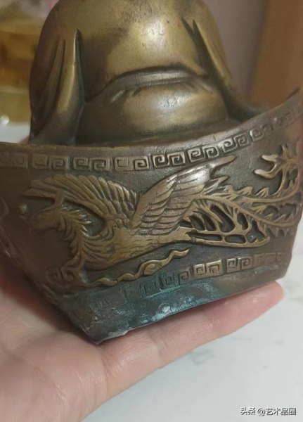 弥勒佛,也称弥勒尊佛,即未来佛,藏语谓“强巴”。此件弥勒佛铜摆件脸带笑容,坐在龙纹元宝上,有和气生财、累积财富的意味。仔细观察皮壳包浆熟旧有古韵,线条自然犀利感强,沁色入骨深沉,综上所述年份到明代,经综合鉴定到代精品!有较高的收藏价值!